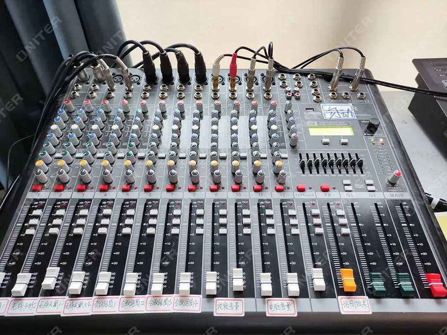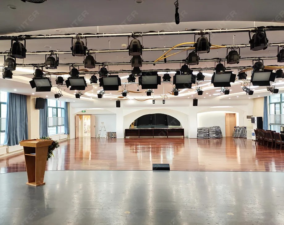 ONITER(欧尼特)为此设计了一套根据活动场地环境的智能中控+专业扩声系统整体解决方案,助力学校扩声系统建设,为各类文体活动的开展提供稳定的技术支持。