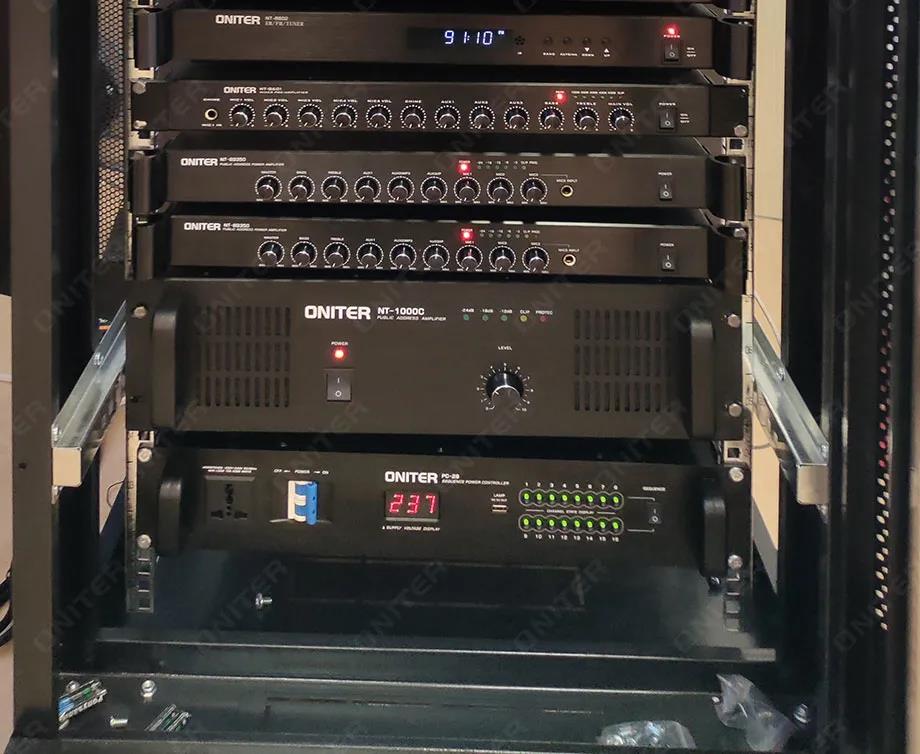 ONITER(欧尼特)为此设计了一套根据校区环境构建的数字IP网络广播系统整体解决方案,投入运行后可以满足学校的日常上下课打铃,广播,校园活动,户外会议等的使用需要。