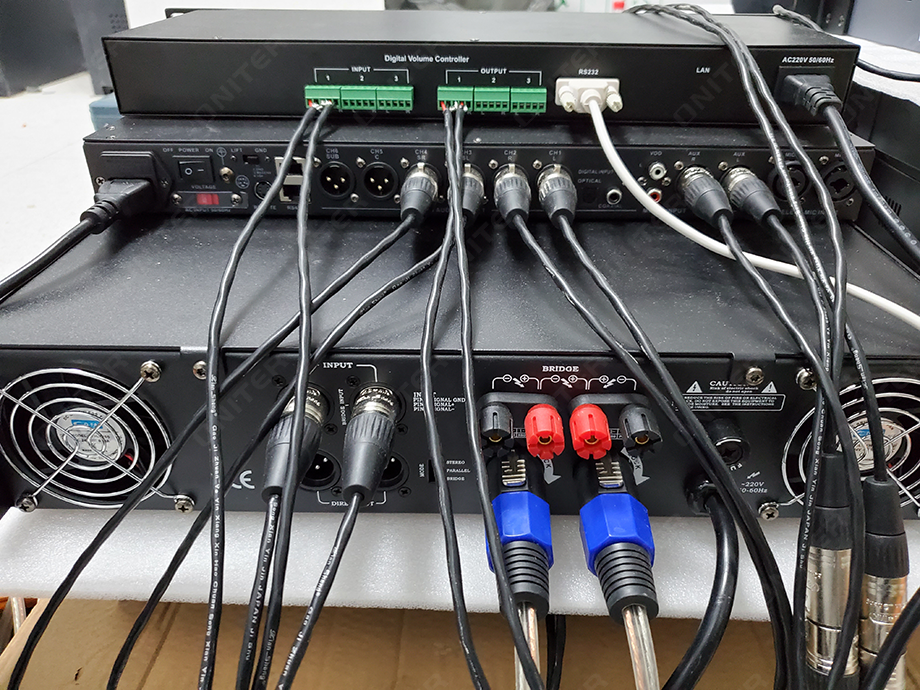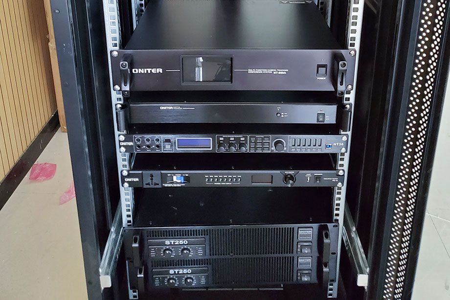 专业调音台与功放设备可以很好地保证会议室发言人讲话时语言清晰、声压余量充分、声场分布均匀、让与会人员都能够有最好的会议体验。