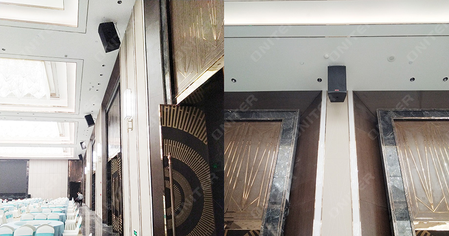 为了匹配江山丽枫花园酒店五星级硬件设施,ONITER作为共建单位,为其设计了酒店专业扩声系统、背景音乐广播系统,覆盖区域包括酒店大堂、走廊、大宴会厅、小宴会厅、小厅等。