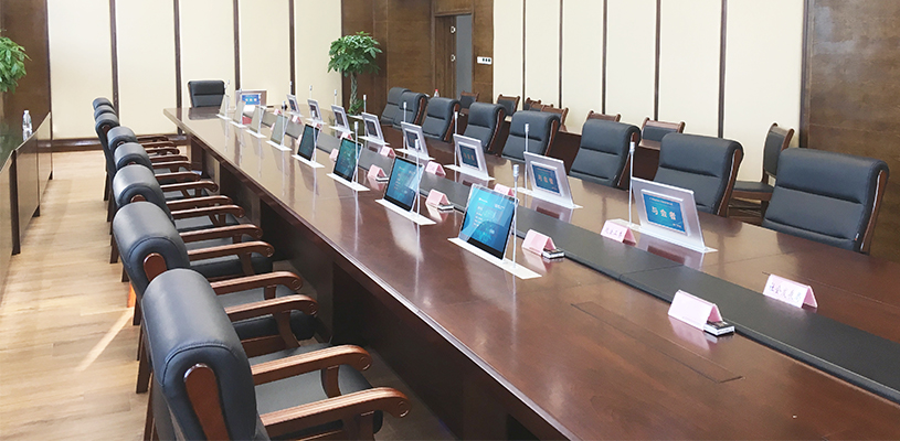 每开一饮会,收一堆材料,看一遍就搁下 这是不少人的开会经历,目前,这种情况正随着无纸化会议系统的推广应用而逐渐消失,现在开会不再分发纸质资料,而是通过智能触控终端阅读资料、查阅文件、视频交互等进行高效、节能、环保的开会。