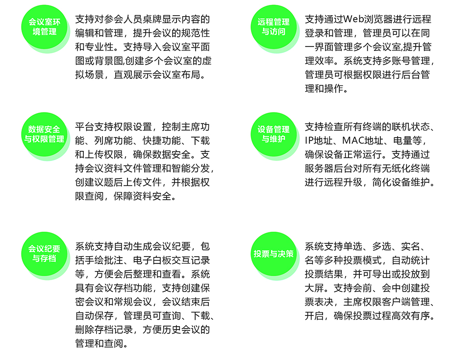 通过建设无纸化会议室,可以更好地收集、整理和分析会议数据,为学校领导提供决策支持,帮助其更加科学地制定学校发展规划和管理策略。